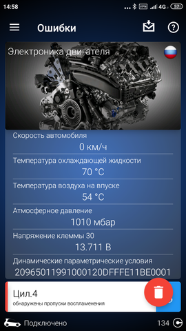 во второй половине дня завожу ...открываю обдэлевен , а там ошибка ...но уже по цил.4 ( "пропуски воспламенения")..